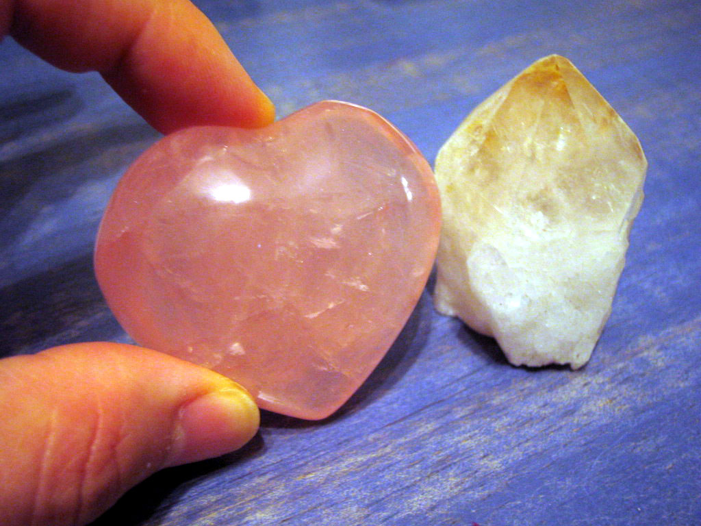 その中の二つ、ハート型のローズクォーツと、キャンドルクォーツ。